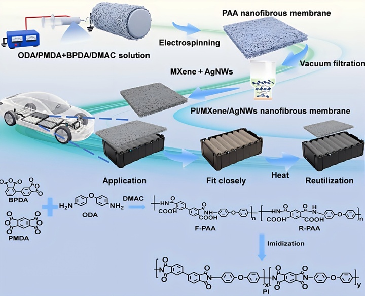 “薄膜仅有0.21毫米,比两张A4纸还薄,但导电率高达156 S/cm,能阻挡99.9%以上的电磁波!”说起这款薄膜的优点,李文兵滔滔不绝。源于优越性能,这种材料非常适合用于电动汽车电池组的局部电磁屏蔽。它可以根据电池包的不同形状进行热致变形,实现贴合,既不影响电池散热,也不增加整车重量。一旦发生热失控,材料的阻燃特性还能为乘员争取宝贵的逃生时间。