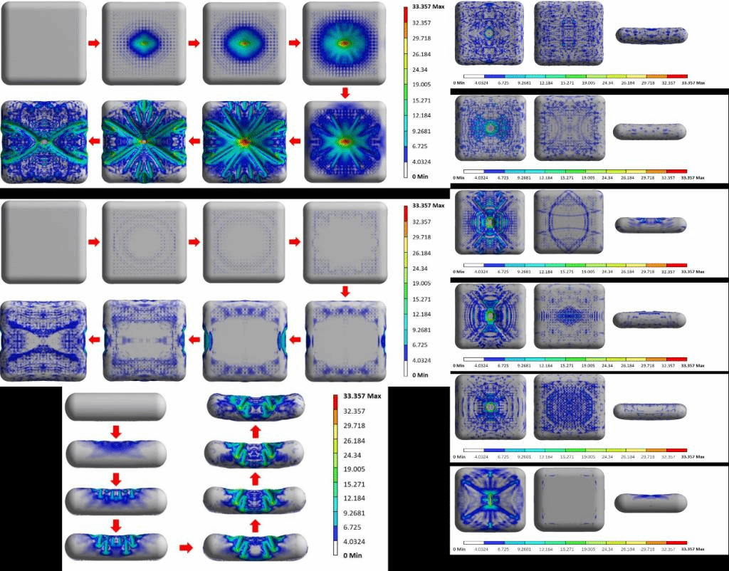 图4 经编点阵结构增强柔性充气复合材料有限元模拟冲击形变示意图