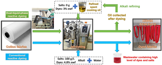 Linyun Liu, Bingnan Mu, WeiLi, Yiqi Yang,Cost-effective reactive dyeing using spent cooking oil for minimal discharge of dyes and salts,