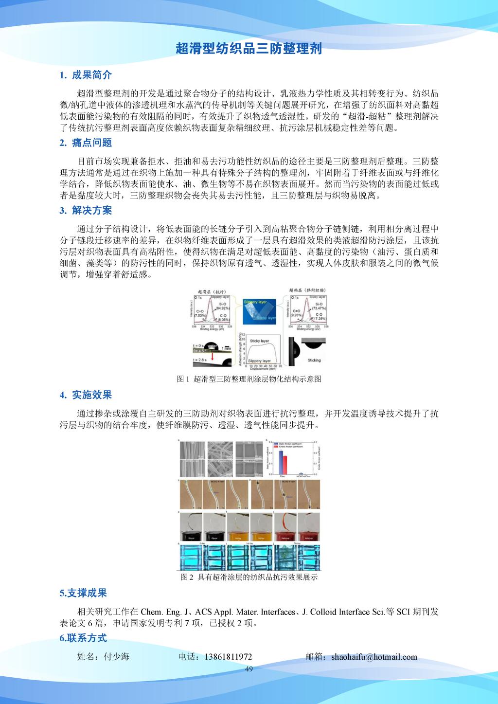 科研成果-超滑型纺织品三防整理剂