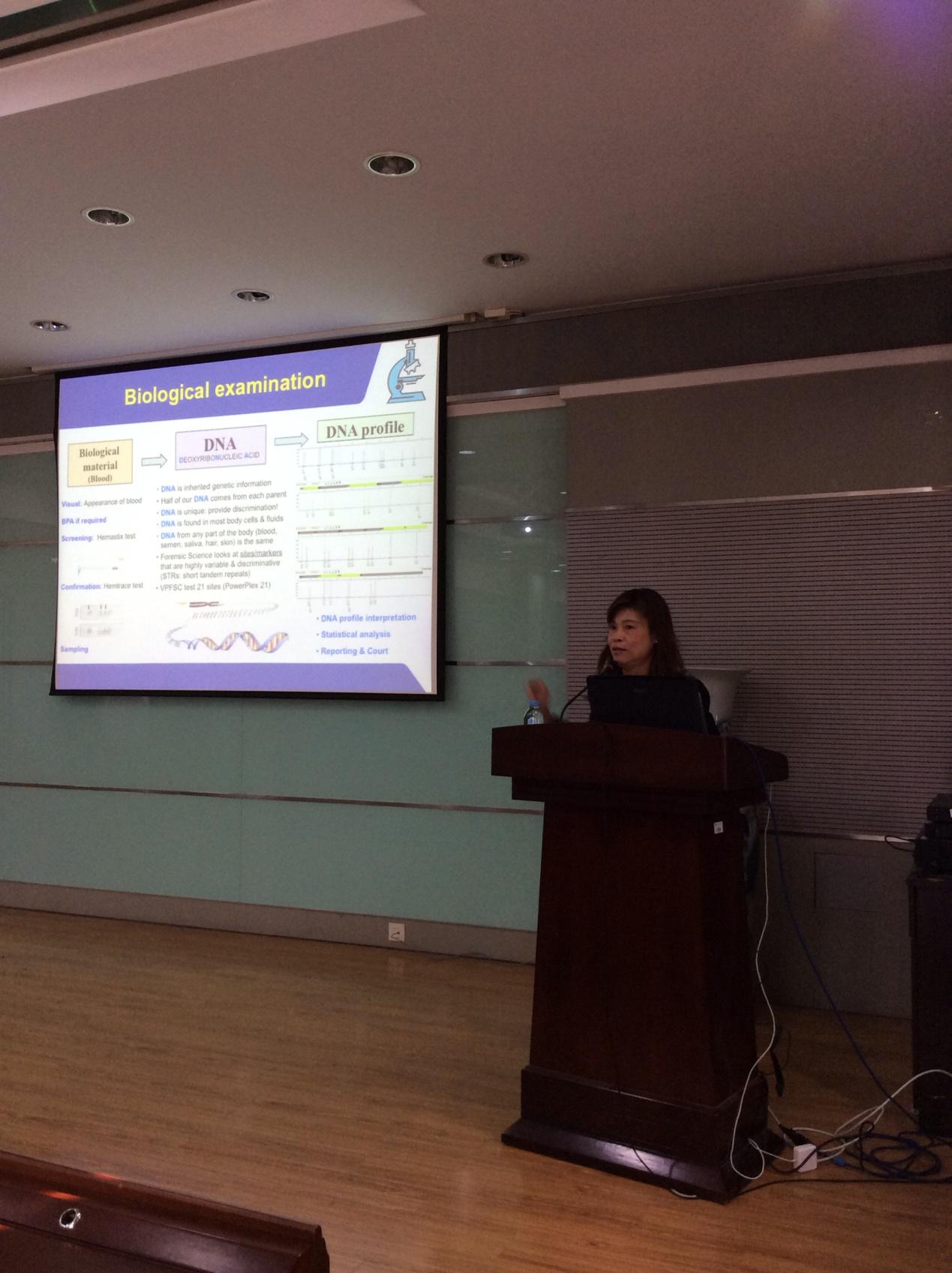 Stephen Michielsen教授是北卡罗莱纳州立大学纺织学院纺织工程、化学和科学系教授,主要研究方向是刑侦科学中的血迹分析。Stephen Michielsen教授主要从血迹在纺织品上的模式分析、人体排汗结束时间对血痕的影响以及纺织品结构对血迹的影响。通过纺织品上的血迹分析,还原犯罪现场。Stephen Michielsen教授最近获得美国国家司法研究所(US National Institute of Justice)研究项目,研究血迹与纺织材料的相互作用。Yuet Chang博士是澳大利亚维多利亚州警署的一名法医,毕业于弗林德斯大学,主要研究刑侦科学中的DNA技术。Yuet Chang博士结合自己在法医生物学领域超过十八年之久的工作经验,向我们讲述了她在维多利亚州警署负责犯罪现场与纺织品有关的检查、取证、提供书面报告的经历。Yuet Chang博士曾研究运用近红外光谱(NIR)技术检测深色服装在多重波长光源下的精液、唾液和血迹。