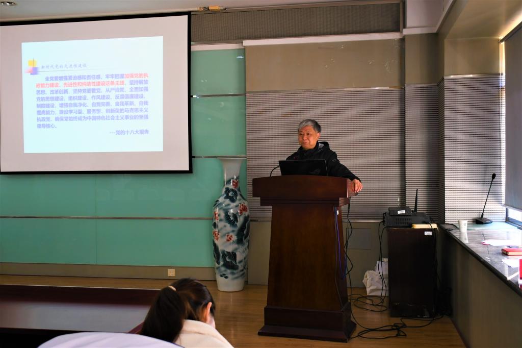 本次培训共开展两场线下讲座。第一场主题为《新时代党的先进性建设》,由校关工常务副主任、原校党委副书记娄国栋主讲。娄老师从党的建设历史经验、新时代党的先进性建设、新任务新要求三个方面出发,着眼党的十九大报告、时政热点,深刻剖析新时代下党的先进性建设,让学员对党有了一个更加深刻的认识。