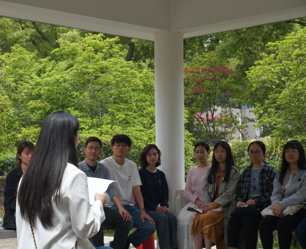 随后,党员们在诗词碑廊开展《习近平与大学生朋友们》读书交流会。博士第三党支部书记陈弈菲首先介绍,该书籍讲述了习近平同志在河北、福建、浙江、上海和到中央工作以来,与大学生们交往、交流和交心的故事。博士第三党支部党员丁乾琨、苏婧和朱豆豆为大家分享读书感悟,结合新时代纺织青年的优秀事迹,表示作为研究生党员既要树立远大理想,也要求真务实、脚踏实地、不畏困难、勇于实践。