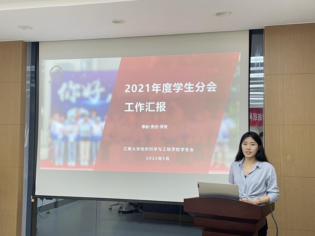在学风建设和人才培养的实际成果。学院学生会执行主席吕鑫,由“纺初心、织华年、冀未来”三方面展开学院学生会2021年工作汇报,过去一年学生会积极推动政治理论学习常态化、规范化,在党团引领下凝聚组织力量,深化组织改革,优化职能分配,严格落实考核机制,深化组织建设推进人才培养。