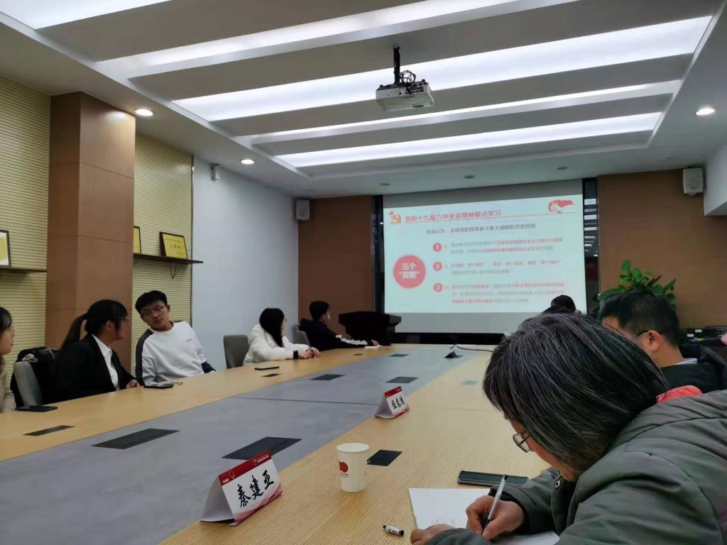 纺织本科生党支部在学院A306会议开展了十九届六中全会精神专题党课学习。本次会议还邀请了特邀党建组织员秦建亚老师给以学习指导。