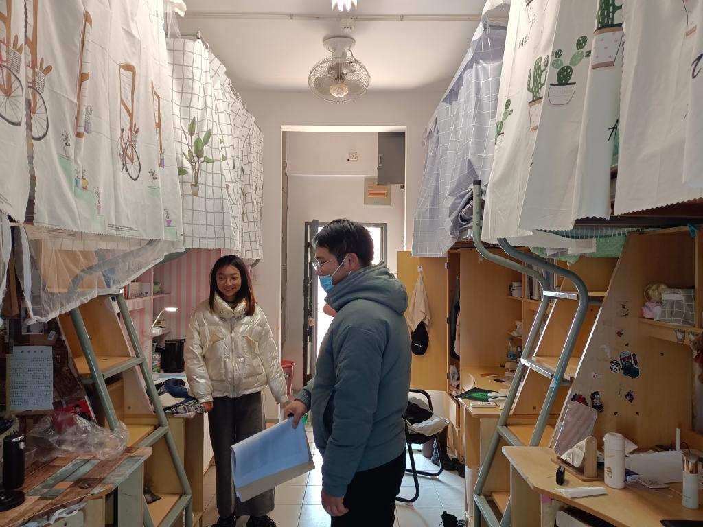 本次检查工作的重点是宿舍内违章电器、用电安全、宿舍卫生等方面的情况。检查小组逐楼逐层走进宿舍,认真细致地检查各宿舍的安全隐患,将存在问题的宿舍进行记录整理,现场督促相关宿舍进行限期整改。老师们还仔细询问了同学们近期的期末复习情况,安抚大家的考试焦虑情绪,对留校进行科研工作的研究生表示慰问与鼓励。检查过程中,老师们再三强调宿舍安全的重要性,提醒同学们树立安全意识,确保冬季用电安全,拒绝使用违章电器,保持宿舍良好卫生,养成积极的生活习惯和作风。同时也提醒各位同学,寒假假期即将来临,离校时定要整理好个人用品、清扫宿舍、关好门窗、切断电源,外出时要做好个人防护、减少聚焦,注意财务和人身安全。