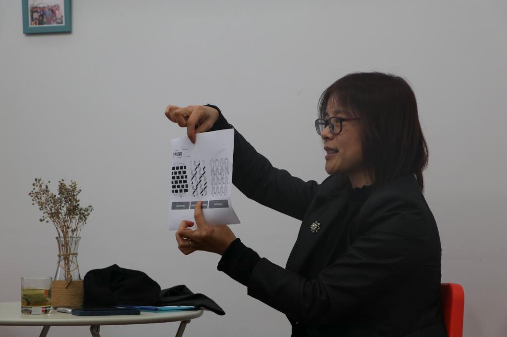 丛洪莲教授谈到,针织本身是一种连接,有横向连接,有纵向连接,正如人与周围事物有着千丝万缕的联系。针织中强力的连接会使织物更具弹性,生活中如果个体足够优秀就会使团队或小组同样优秀,从而与身边的人建立连接,相互影响,个体自身也会更加优秀。每个人要主动融入集体,有大视野、大格局、大思维、大境界,与祖国、与时代同向、同行。