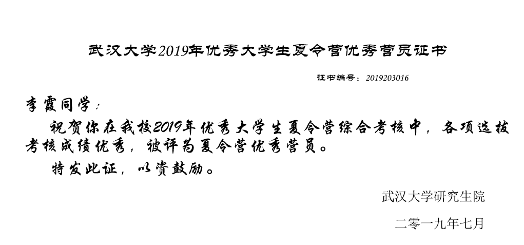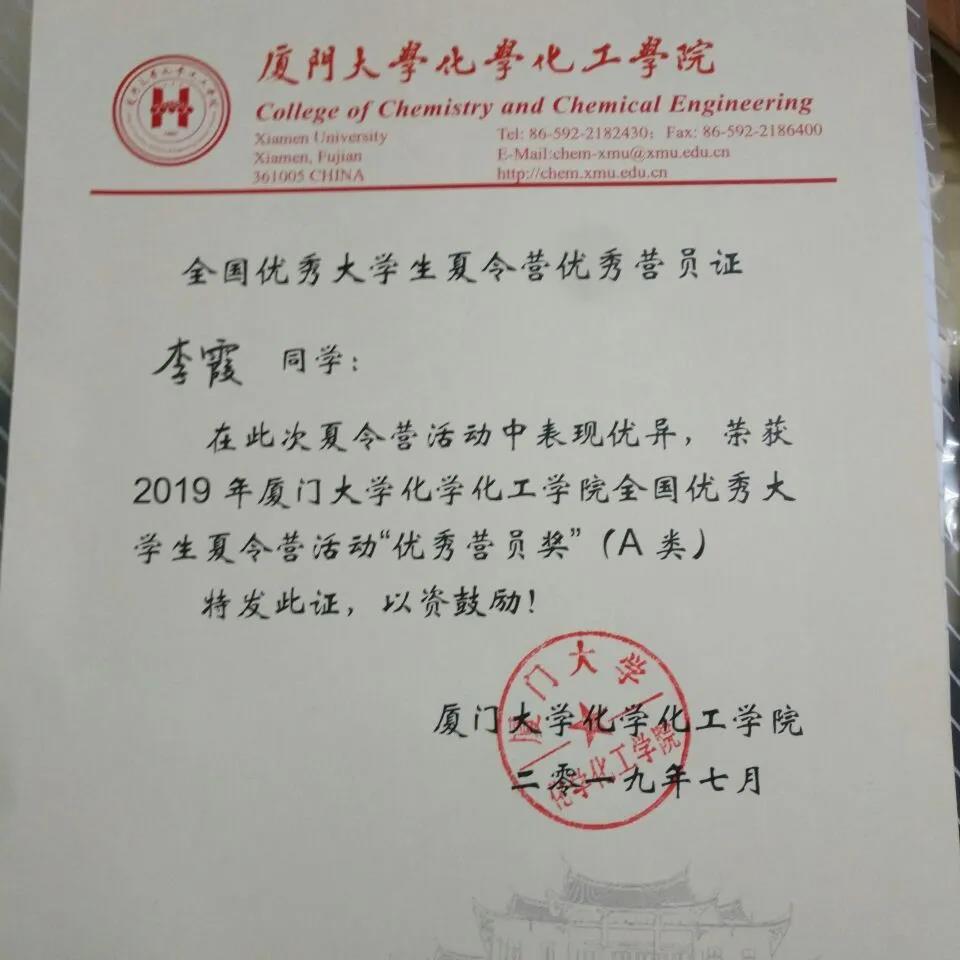 大三下学期,开始留意心仪高校的夏令营活动,听取学长学姐的建议,做好相应的准备工作,加强专业英语和专业知识的学习,最终成为了武大和厦大的优秀营员,这一学年也获得了国家奖学金以及校三好学生的荣誉称号。