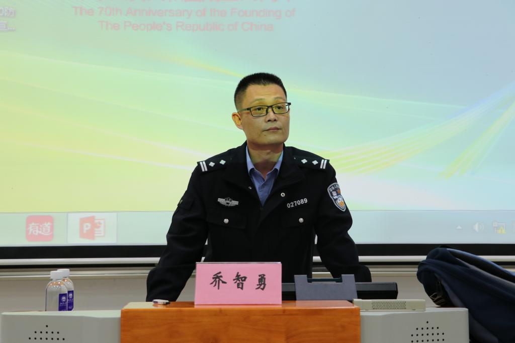 20191110日晚,纺织服装学院、医学院在2A127教室,共同举办2019级本科生安全知识讲座,主讲嘉宾为滨湖区公安分局内保大队副大队长乔智勇警官。