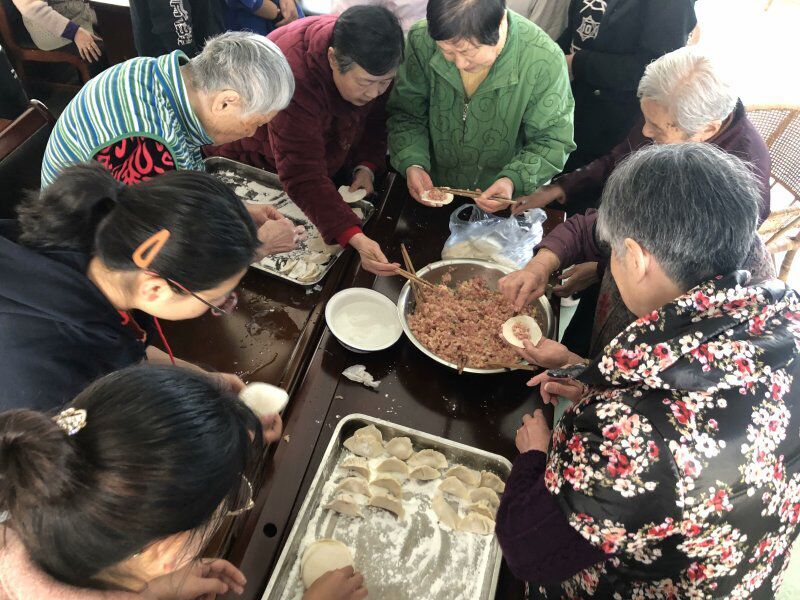 青协同学与老人包饺子