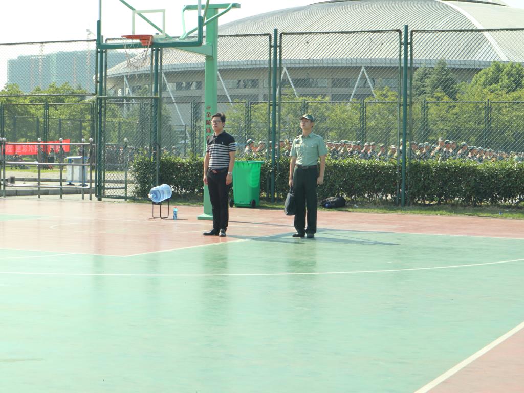 8月24日上午,为鼓舞士气,纺织服装学院党委副书记周云龙来到军训场地检查指导2018年学生军训工作,检验学院参训学生军训成果。