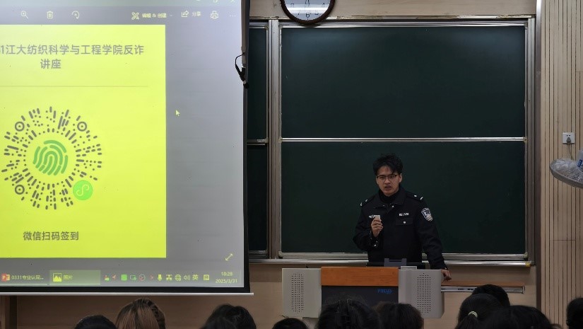 “大学未毕业就欠款上百万!”反诈民警以骇人听闻的生动案例开讲,深入剖析了近年来高校学生最易受骗的“刷单返利”“网络交友诈骗”“虚假贷款”等常见诈骗类型及防范要点,重点提醒学生警惕AI换脸、虚假求职等新型诈骗手段,做好个人信息保护,守住自己的“钱袋子”。同时,宣讲中还反复强调了学生报警热线及“国家反诈中心”APP等的使用,切实提升技术防范能力。