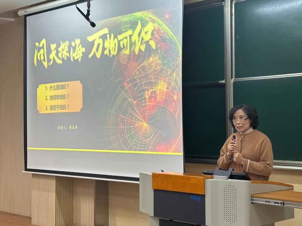 谢春萍教授以“探天问海,万物可织”为主题,从“什么是纺织?”“如何学纺织?”“是否干纺织?”三个维度展开讲解。她以生动案例阐释了纺织科技的广泛应用,指出纺织不仅是传统产业,更是支撑航空航天、深海探测、医疗防护等高新领域的核心力量,彰显了“柔韧致远,创新无限”的行业精神。在谈到学习方法时,谢教授强调“知行合一”的重要性,鼓励同学们夯实专业基础,培养跨学科视野,在实践中提升创新能力。针对就业方向,她分析了纺织行业在智能制造、绿色材料等新兴领域的发展潜力,勉励学生坚定专业自信,以科技赋能纺织,服务国家战略需求。