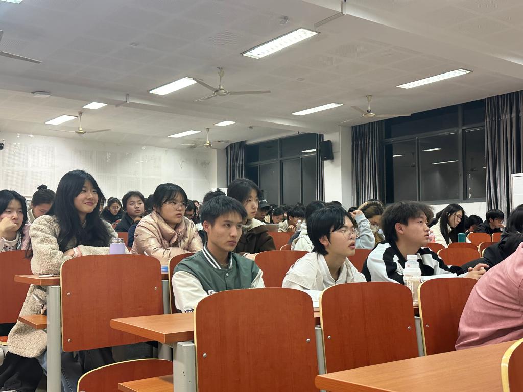 特邀报告员、学院关工委委员谢春萍教授担任主讲嘉宾,学院辅导员孙慧及2024级全体本科生参与本次活动。活动由团委通讯社李佳雯主持。