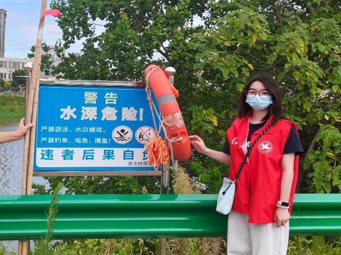 刘子涵同学至江西南昌市五七社区,积极投身交通安全劝导,路口提醒行人车辆戴头盔,护居民出行平安;夏季溺水高发,她巡查水域安全设施,宣传防溺知识,普及自救方法,为居民生命筑青春防线。