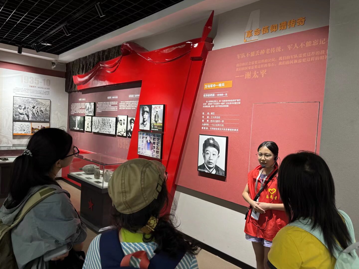 支教间隙,团队成员深入泸定县各地,围绕当地丰富的红色文化资源开展专题调研,直观感悟党的创新理论在革命老区的生动实践,于“行走的思政课”中坚定理想信念、厚植家国情怀。他们沿着泸定桥、磨西会议旧址开展学习调研,当亲眼看到大渡河汹涌的湍流、触摸到泸定桥的斑驳时,书本里抽象的“长征精神”瞬间变成了脚下有温度的土地;在了解到磨西镇作为中央红军进入甘孜州的第一镇,曾见证毛泽东等中央领导宿营、是红军进军川西和北上会师重要站点的历史后,支教团成员们深受先辈们在困境中坚守理想、勇寻生路的精神触动,还将这些鲜活的红色故事讲给夏令营的孩子们听,让乡村振兴与红色传承在川西大地上实现同频共振。