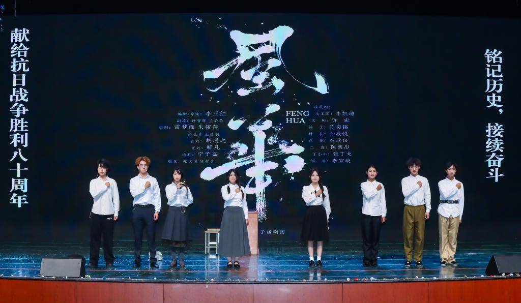话剧《风华》以多场景并行,带领观众穿越历史长河,重温先辈风骨;歌舞《青花瓷+你要跳舞吗》创新融合婉转古韵与动感节奏,展现纺织学子的多元风采;情景剧《经纶千年》以纺织为线索,贯穿古今,铺陈出一幅经纶万象的时光画卷;舞蹈《三彩》则以现代编舞语言和富有张力的肢体表达,展现新时代青年的昂扬风貌。