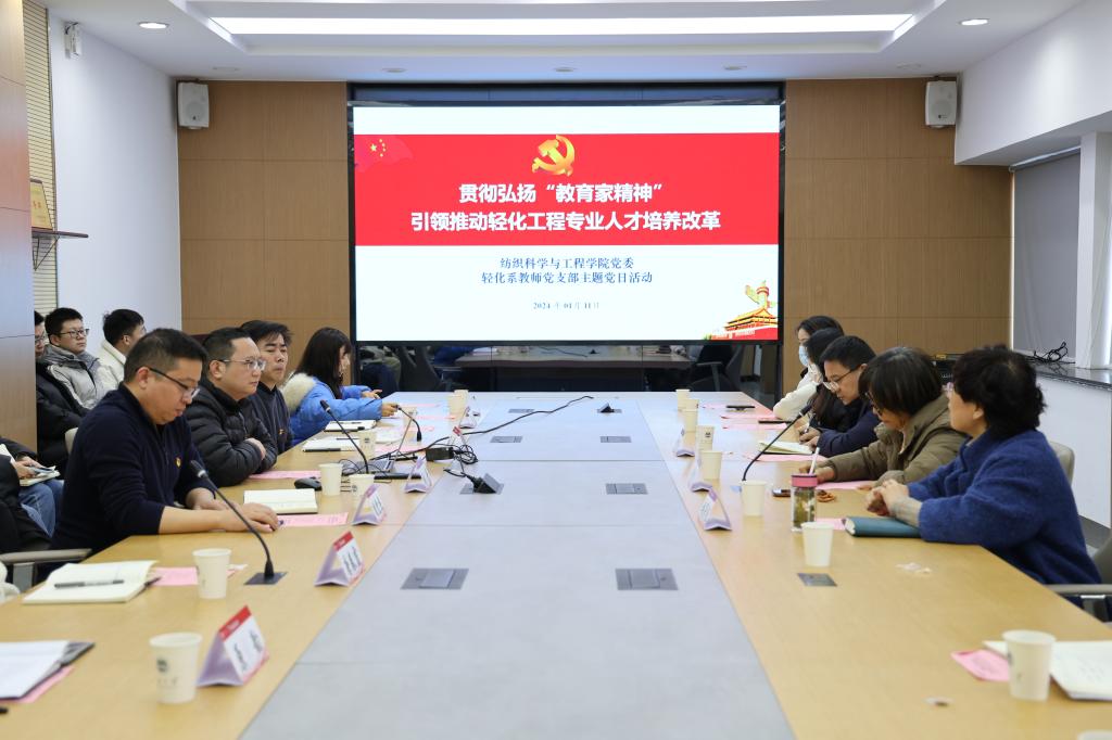 轻化系教师党支部“贯彻弘扬‘教育家精神’,引领推动轻化工程专业人才培养改革”主题党日活动。学院党委书记张菁燕,支部党员、院长付少海,轻化系教师党支部及共建支部、硕士第三党支部全体党员参加活动。活动由党支部书记张丹主持。