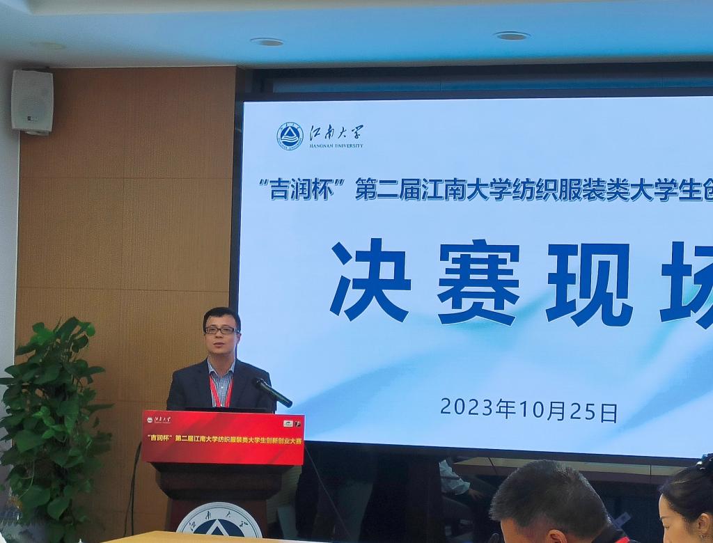 首先陈裕向无锡市吉润国际贸易有限公司对大赛的冠名和支持表示衷心的感谢,对大赛筹备情况及大赛背景进行了介绍。本次决赛将通过答辩展示及专家组评审的方式,评选出10项获奖作品。他希望本次大赛能够激发学生们的创新和实践能力,为社会和纺织服装行业培养更多创新型、应用型、实践型的高素质复合人才。