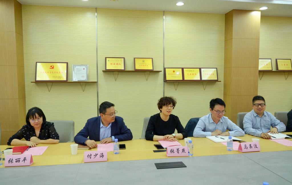 党委书记张菁燕、院长付少海、副院长马丕波、张丽平、张典堂以及系主任等参加座谈交流。会议由张菁燕书记主持。