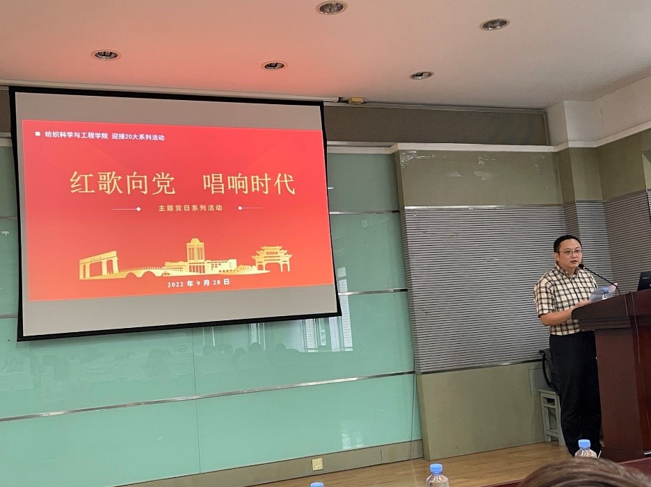 人文学院钱琳副教授作专题报告,学院张菁书记、陈艳君副书记列席活动。主题党日活动由轻化系教师党支部书记张丹教授主持,学院40余名师生参会。