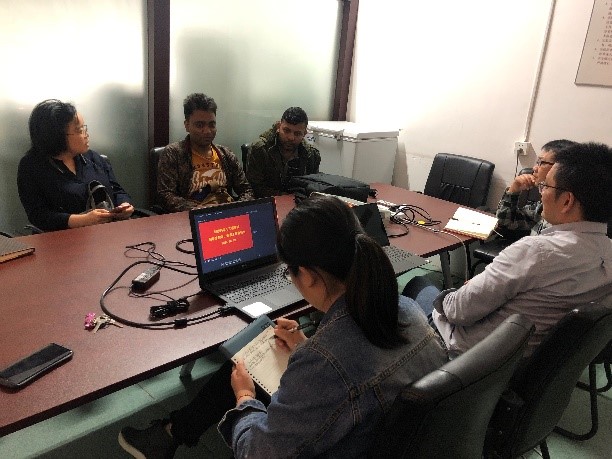 会上,黄锋林副院长传达了学校与学院在疫情期间对留学生教学管理的相关规定和政策,并询问了他们生活与学习的近况。卡萨那同学表示,非常感谢中国政府对人民的生命安全的高度负责,以及学校在疫情期间的教学工作;所有留学生都认为中国政府防疫工作的周到和完善,超出了他和家人的想象,并对中国国内的现状表示羡慕。卡萨那还说,中国国内疫情比较严重的时候,纺织学院和国教院的老师每天都联系他关心他的状况,让他虽然独在异乡,却不感到孤独和恐惧。