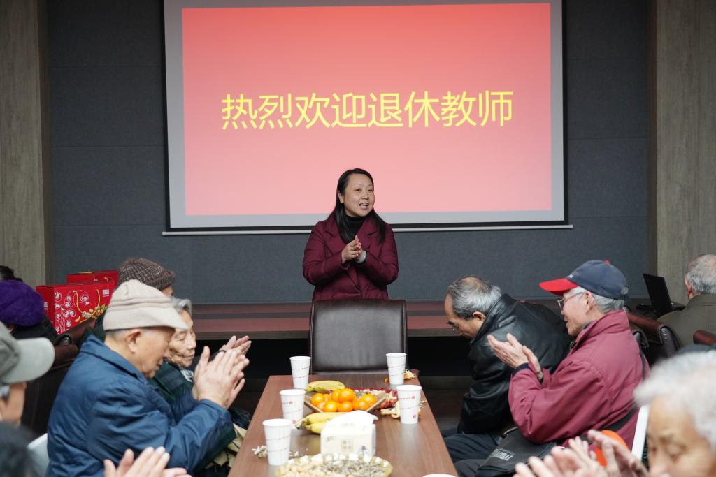 退休教师迎新茶话会在B101会议室举行,退休教师和院系领导齐聚一堂,共贺新年。院党委书记张菁、院长付少海及40余位退休教职工参加了本次活动。
