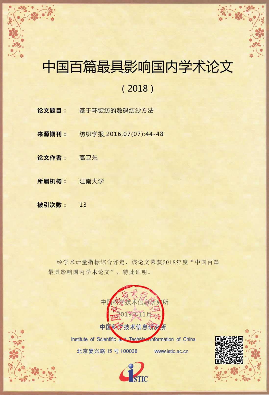纺织服装学院高卫东教授论文《基于环锭纺的数码纺纱方法》位列其中。