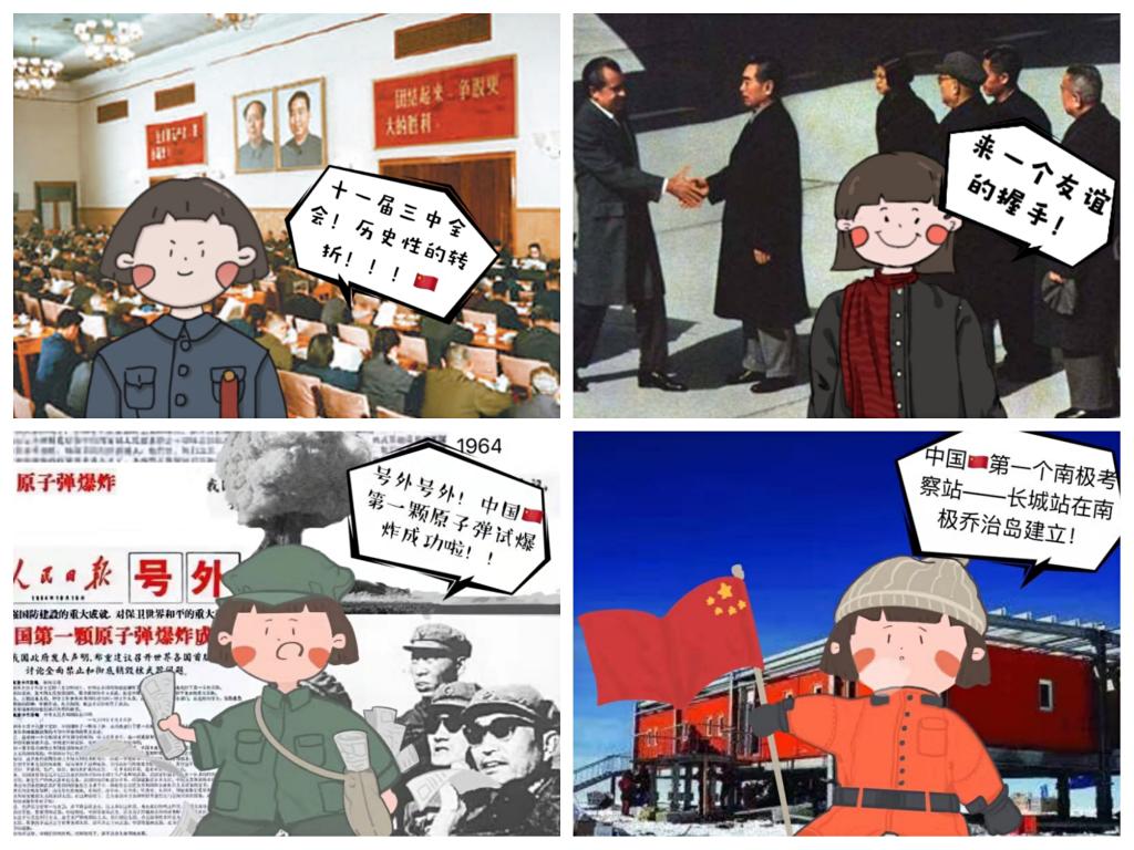 时值“阿中哥”——中华人民共和国成立70周年,四虎 纺织服装学院本科生低年级党支部党员作为“阿中哥”的“铁粉”,拿起画笔,把对“阿中哥”的爱凝成笔下一位追寻强国梦的女孩——小纺。她穿上那个时代或是流行服装,或是工作制服,与珍贵历史合影,以回溯“阿中哥”风雨兼程、砥砺前行的伟大历程,全面呈现“阿中哥”70年发展成就。