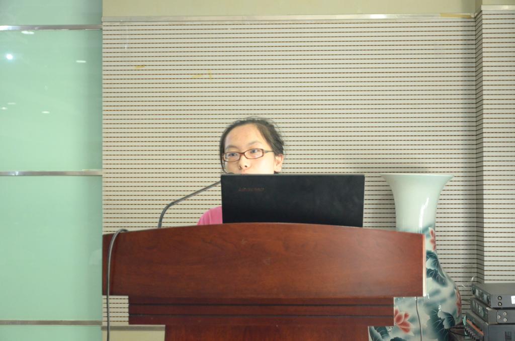 的高思梦同学,她做的是关于甜菜碱聚合物抗菌剂的合成及其在棉织物整理中的应用的课题,她先从棉织物的性能、抗菌材料的构建以及选择甜菜碱的原因等进行简单的背景介绍,再详细介绍了抗菌剂的设计合成、结构表征以及对整理后织物的性能测试,表示该抗菌剂对织物的服用性能影响不大。接下来是浙江理工大学的陈芳丽同学,她给大家带来了一个非常新颖的词汇——水足迹,从一些案例向大家介绍了什么是水足迹以及最新进展和总结,由此也引出了一系列包括碳足迹等不同足迹的新型环保理念,指出降低产品的足迹可以提高可持续发展能力。最后是四虎