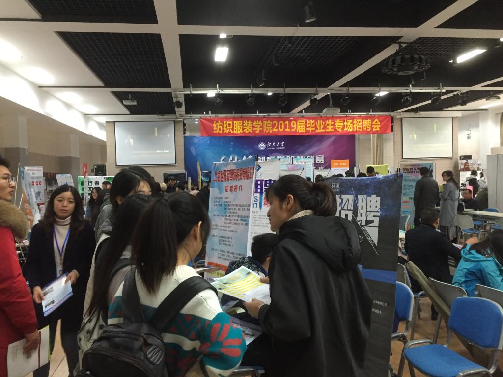 2019届毕业生共517人,其中本科毕业生363人,研究生毕业生154人。本次招聘会共有来自省内外的58家纺织、轻化、服装行业的单位参会,其中包括中国纺织对外经济技术合作有限公司、江苏阳光集团有限公司、江苏国泰华盛实业有限公司、云蝠投资控股有限公司等国内知名企业,共为毕业生提供就业岗位1128个。本科生平均起薪:6000元/月,研究生平均起薪:8000元/月。