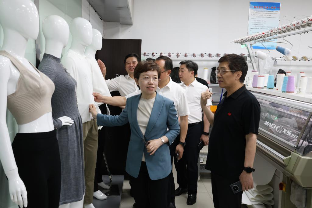 及针织技术教育部工程中心进行了深入了解,重点关注了纺织一流学科的建设进展和产学研融合情况。她对学院取得的教育成果给予了高度评价,并指出,要继续贯彻习近平总书记对江苏工作的重要指示,持续加大科研投入,不断强化和提升学院的学科特色和优势,以此推动新兴生产力的发展,为现代化建设注入更多动力。