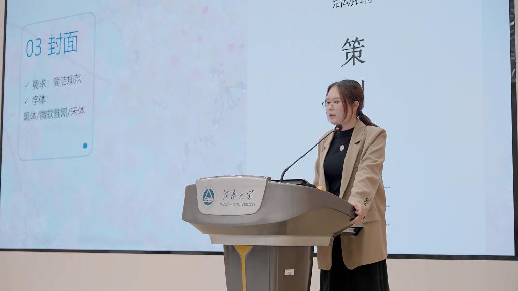 于乐作《讲好江南故事 传播江南声音》新闻写作方法专题培训,通过对成功与失败案例的分析,以及相关字词语句的运用纠正,使学生干部们深入理解新闻写作的核心要义。人文学院学生会主席团成员许芮溪分享《如何策划一场有趣有料的学生活动:策划撰写培训》,对活动策划基本框架、流程制定、预算分析、写作技巧等进行了深入浅出、旁征博引地讲解,紧贴工作实际,令参加培训的学员受益匪浅。此外,还进行了摄影技能方面的培训,从构图、光线和角度等摄方面学习照片的拍摄技巧,提升学生骨干的拍摄水平。