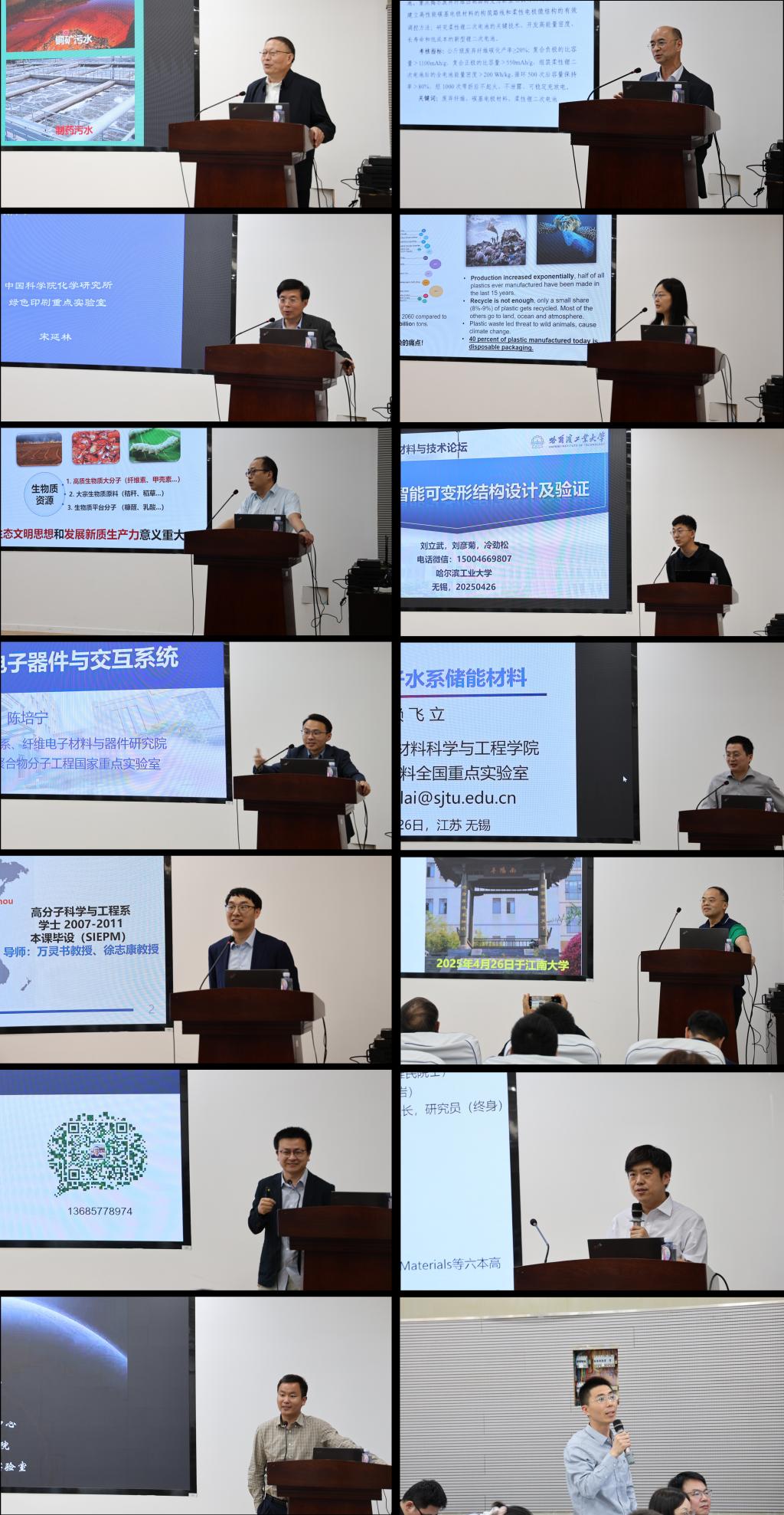 上午论坛报告包括北京化工大学于中振教授“光热转化复合材料及应用”、华中科技大学黄云辉教授“高比能电池关键材料与技术”、中科院化学所宋延林教授“从活字印刷到印刷制造”、华南理工大学王小慧教授“非粮生物质转化利用及其可持续材料”,武汉大学邓红兵教授“生物质纤维医用材料”及哈尔滨工业大学李钦宇教授“形状记忆智能可变形结构设计及验证”,由宋延林教授和黄云辉教授先后主持。