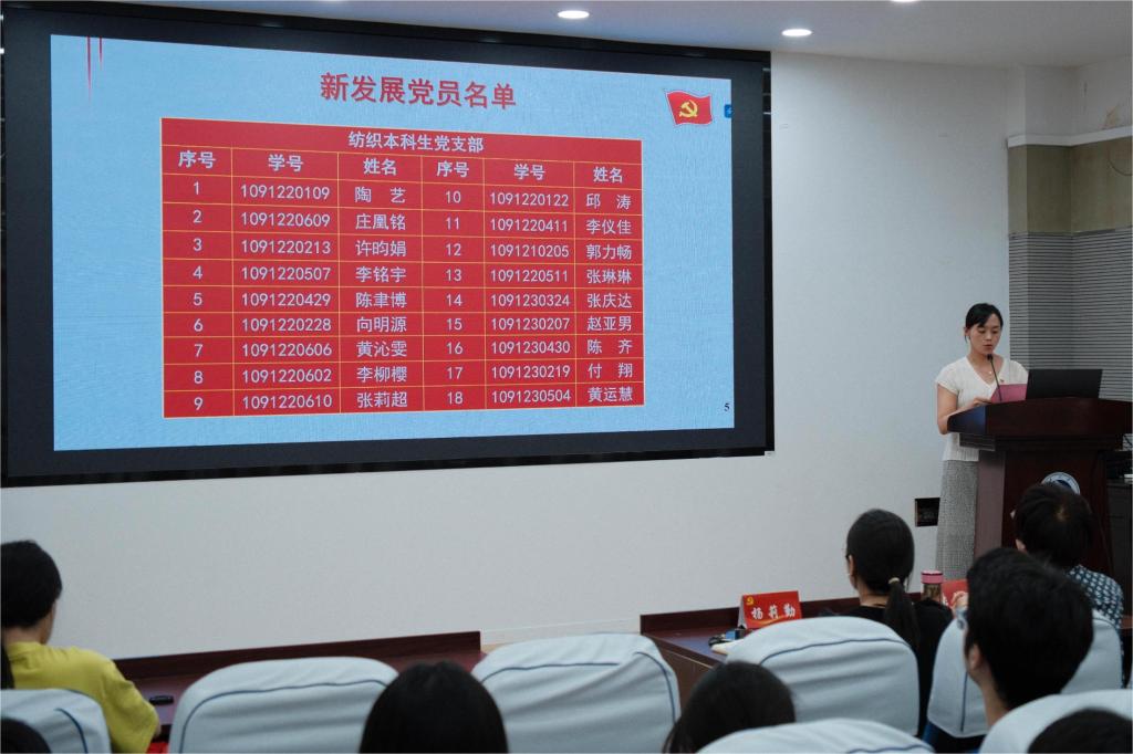 在A103会议室举行“七一”入党宣誓仪式暨专题党课。学院党委书记张菁燕、党委副书记兼副院长杨莉勤、专职组织员张志新、党建辅导员孙婷婷以及新发展学生党员参加活动。
