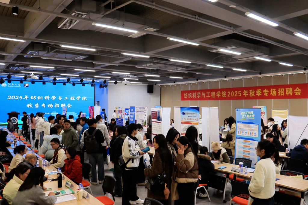 本场招聘会吸引了包括无锡一棉、江苏国泰华盛等近50家优质单位,各单位提供涵盖纺织业、服装服饰、文体教育、互联网服务、专业设备制造等多元领域的就业岗位。招聘现场气氛热烈,展位星罗棋布。各企业通过发放宣传资料、面对面沟通及现场面试等多种形式,向毕业生详尽展示了企业实力、岗位详情、薪酬体系及广阔的职业发展前景。毕业生们手持精心准备的简历,满怀自信地穿梭于各展位之间,主动了解岗位要求、工作环境与福利待遇,展现出扎实的专业功底和积极的求职姿态。