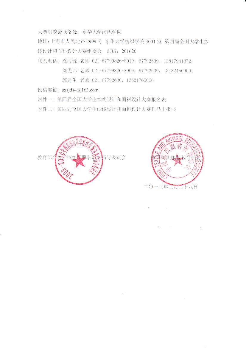 关于举办第四届全国大学生纱线设计和面料设计大赛的通知