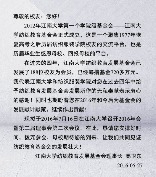 纺织教育发展基金会2016年会暨第二届理事会第二次会议邀请函
