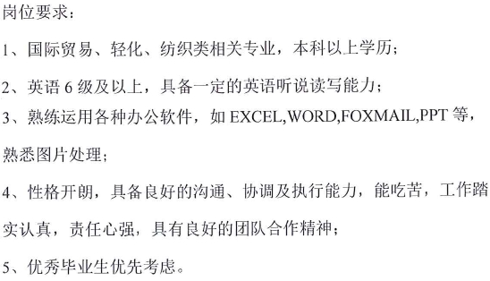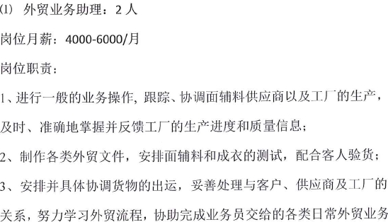 南京杰丽达服饰有限公司主营服装外贸业务,产品主要出口美国、加拿大,2017年出口额达1800万美金,现因公司业务发展需要,面向大学校园诚聘外贸业务助理。