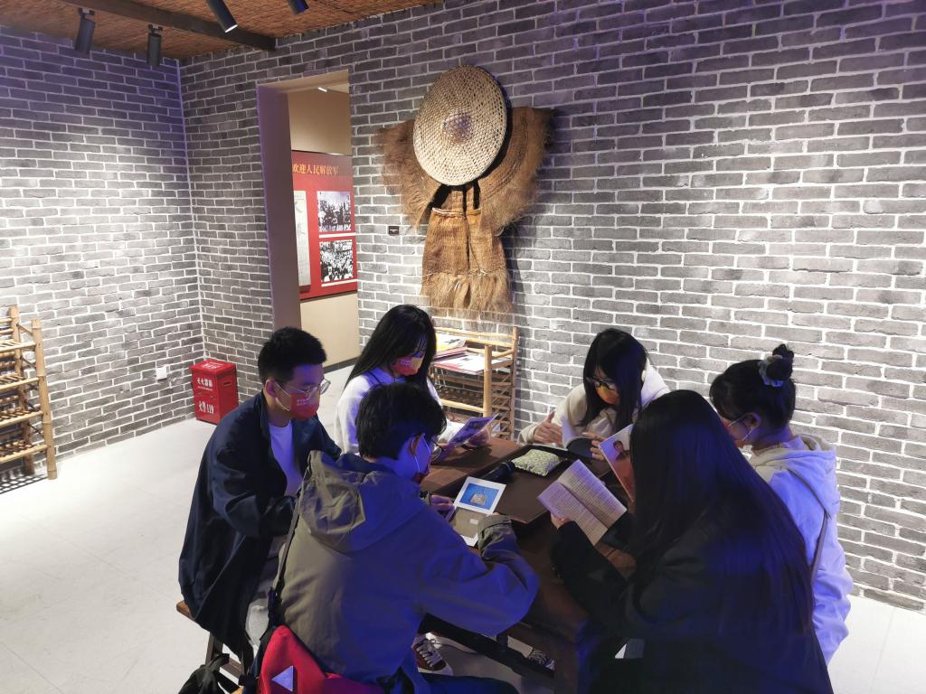严家桥革命历史陈列馆位于无锡市锡山区羊尖镇,总占地面积369平方米,整体建筑是粉墙黛瓦、蠡窗映波的严家桥特色民居风格,主要由室内展示场馆和室外宣誓广场两部分组成。室内展区共计278平方米,依次由序厅、星火燎原、抗日救亡、迎接黎明、红色影厅五个篇章组成,主要展示严家桥的大革命时期、抗日战争时期、解放战争时期的革命征程。同学们在老党员们的带领下,依次参观学习,通过观看纪录片、实物、图表、史料图片文字等展品,沉浸式了解严家桥革命人物谱系和革命历史地图,重温峥嵘岁月,赓续红色血脉,感悟革命精神。参观中,老党员袁伯兴向同学们介绍道:“严家桥是党在锡东地区最早建立党组织并开展革命活动的地区之一。从大革命时期的中共怀下区委驻地,到抗日战争时期严安区和严宛区政府所在地,到解放战争时期中共澄锡虞工委地下交通站,谭震林、谭启龙,李坚真、钱敏、何克希、叶飞、包厚昌等众多党的干部都在这里留下了足迹。”师生一行还参观了位于严家桥村的唐氏工商业陈列馆、锡剧纪念馆、唐苑,踏着唐氏先祖发展的踪迹,学习感悟唐氏家族实业报国的精神力量。