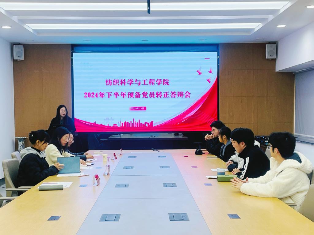 党委副书记、副院长杨莉勤,关工委常务副主任、特邀党建组织员谢翠林,组织员张志新,轻化本科生党支部书记伏曦,纺织本科生党支部书记孙婷婷以及2024年下半年6名拟转正预备党员参加答辩会。