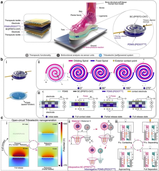 魏取福教授&吕鹏飞研究员团队在Advanced Fiber Materials上发表了题为“Therapeutic Smart Inside Technology with Archimedean Algorithmic Spiral Triboelectric Nanogenerator Based Power System and Sensors”的研究成果,采用“第一性原理指导”的高效电源,开发出柔性便携的多功能智能鞋垫。Alfred Mensah博士为本文的第一作者,四虎