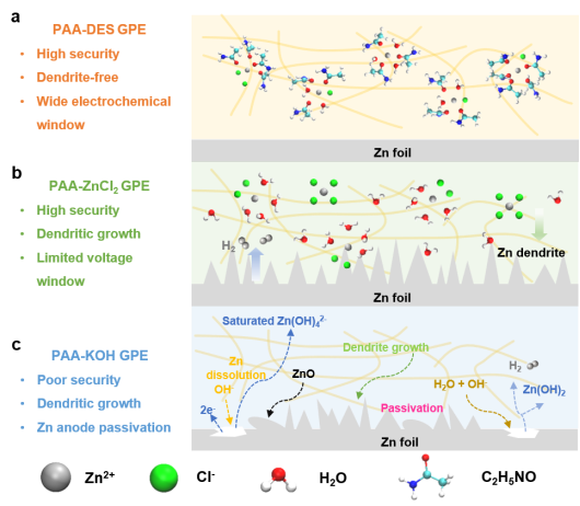 共晶凝胶电解质的作用机制示意图