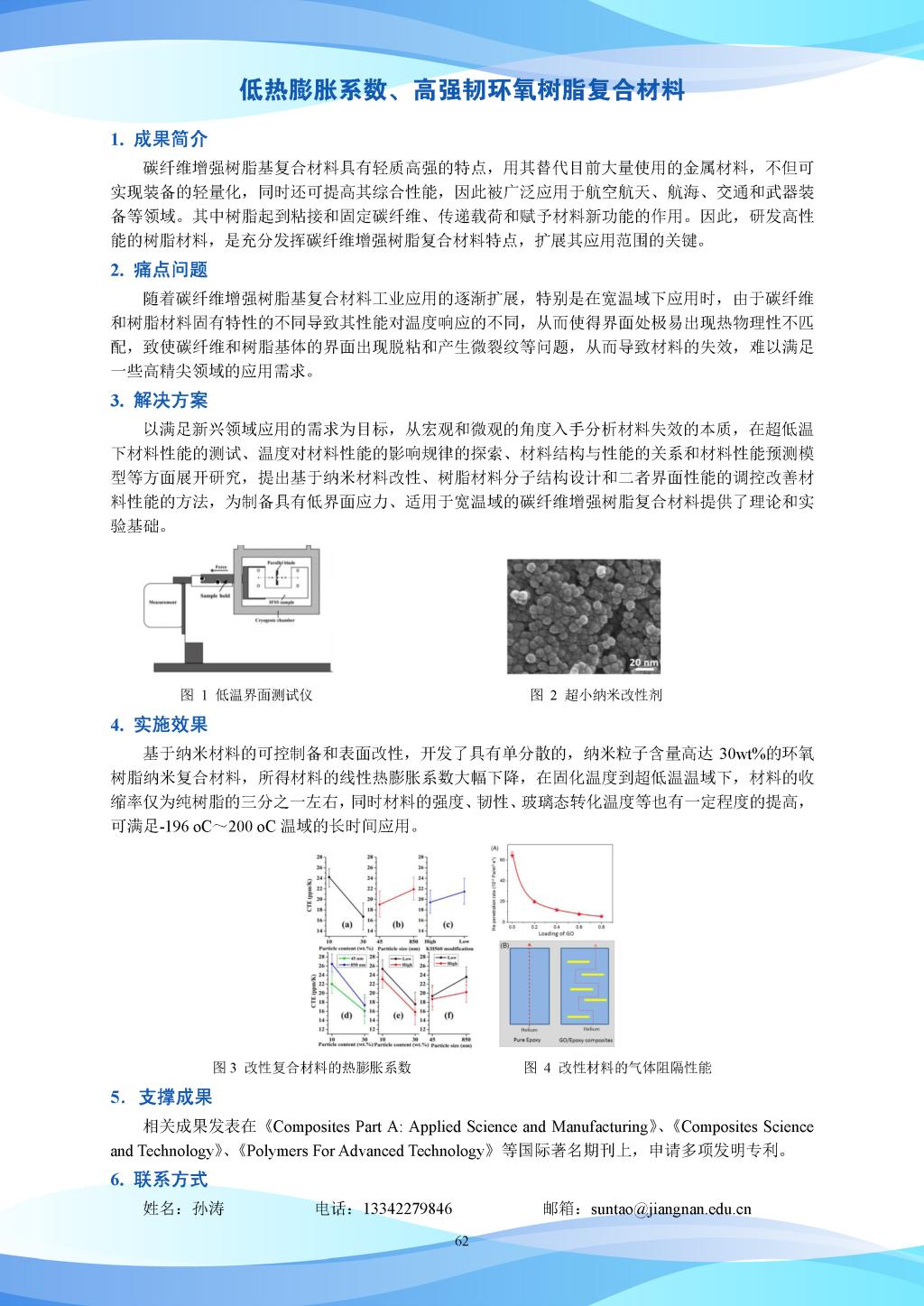 科研成果-低热膨胀系数、高强韧环氧树脂复合材料
