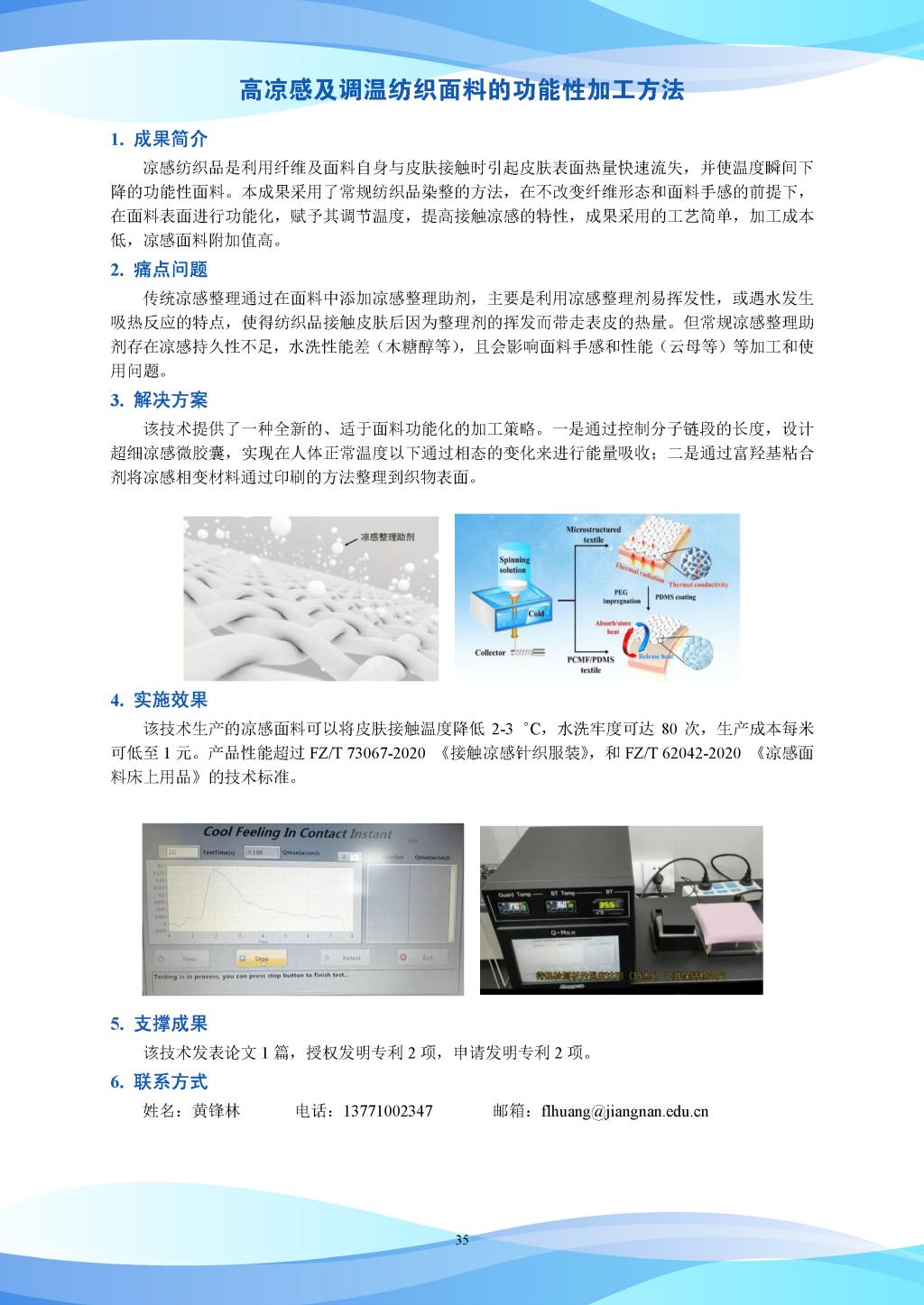 科研成果-高凉感及调温纺织面料的功能性加工方法