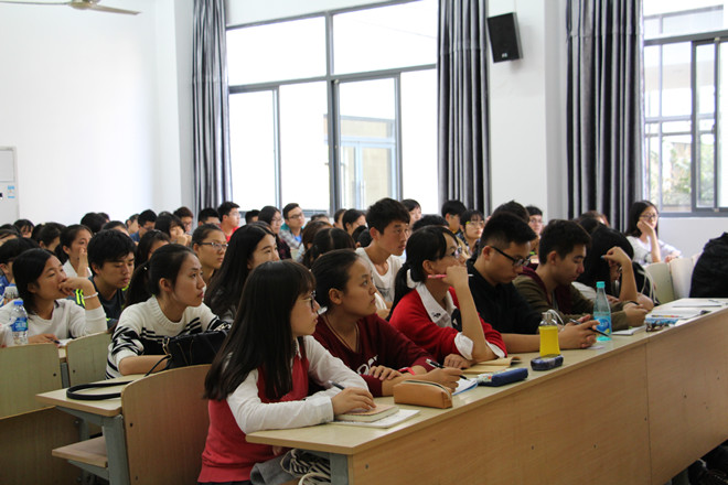10月21日下午,纺服学院2015级新生党课在一教1A114教室举行。学院关工委刘志远老师受邀做了题为“入党基本知识”的专题培训。学院百余名大一新生参加了讲座。
