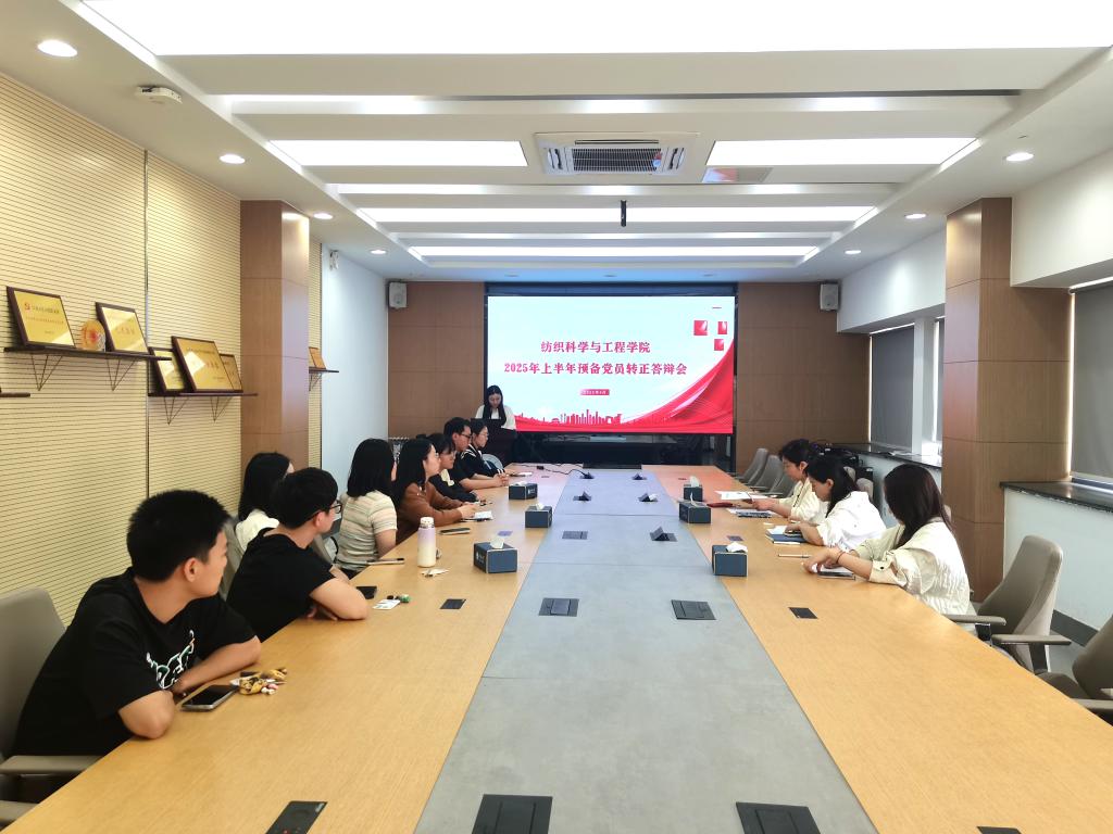 特邀党建组织员沈波,组织员张志新,辅导员孙慧,纺织本科生党支部书记孙婷婷以及2025年上半年8名拟转正预备党员参加答辩会。