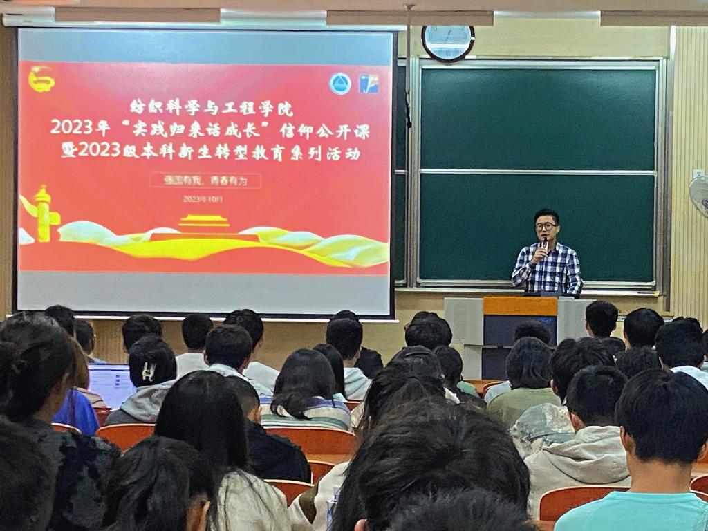 在一教1B103举办“实践归来话成长”信仰公开课暨2023级本科新生转型教育系列讲座。学院学工办主任兼分团委书记陈裕、2023年暑期社会实践各院级重点团队代表、2023级全体本科新生参与本次活动,会议由学院学生会团委通讯社李子心主持。