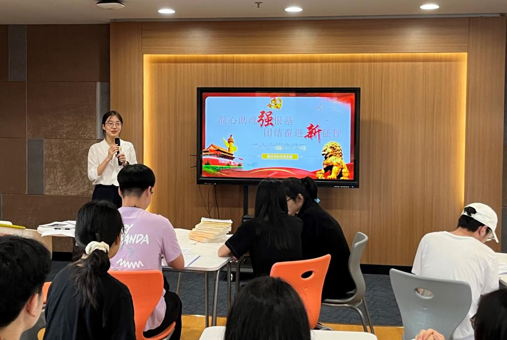 活动伊始,轻化本科生党支部书记伏曦从15个方面带领支部党员全面学习了二十大报告原文内容,结合习近平总书记对青年人的寄语,鼓励大学生党员要时刻牢记使命,用青春挥洒最美的汗水。学习结束,全体党员共同观看了二十大金句视频,进一步加深了对二十大报告的理解。