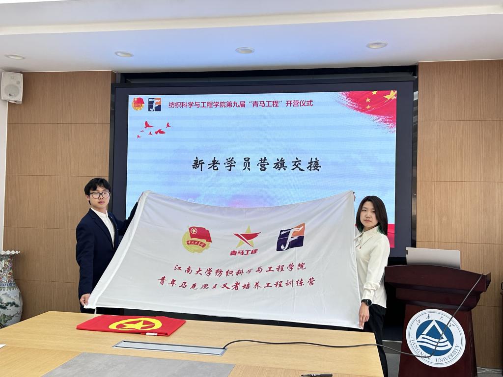 开营仪式上,学院分团委书记陈裕介绍了本届训练营参训学员的基本情况与课程安排,强调结课要求与日常纪律。学院第八届“青马工程”学员代表胡紫瑞进行动员讲话,他分别从“笃实好学、踔厉奋发、能谋善断、先忧后乐”四个方面讲述作为一名青年马克思主义者应如何在盛世中大有可为。胡紫瑞为第九届“青年马克思主义者”培养工程训练营授旗,第九届“青马工程”学员代表李子心带领全体学员宣读誓词。